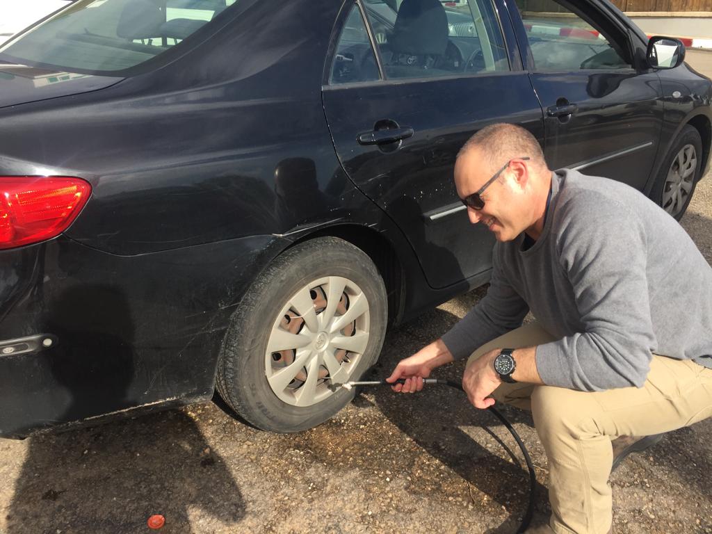 לאחר ההרצאה אני נשארת להפסקה, מדברת עם בעלות עסקים, עונה על שאלות. מקפלים ציוד ויוצאים לאוטו. אנחנו מגלים שאין אוויר בגלגל. בועז מציע להגיע לתחנת הדלק הקרובה, לנפח את הגלגלים, לנסוע ולבדוק במעברות האם ירד אוויר. אם כן – מדובר בפנצ'ר.